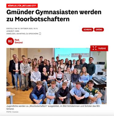 Ein Herzstück der Vorbereitungen auf die "Wetland City Schrems" ist eine innovative Bildungskooperation. Sie umfasst u.a. zwei Universitäten und drei Schulen und bringt Österreichs erste "Moorbotschafter*innen" hervor. Das sind Schülerinnen und Schüler, die sich Wissen aneignen und dieses an andere Schüler*innen weitergeben. Der ORF Niederösterreich war bei einem Ausbildungsmodul mit dabei.